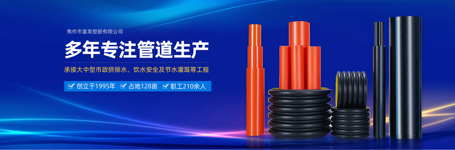 - 焦作市富泉塑膠有限公司,創(chuàng)立于1995年,是一家集研發(fā)、設計、生產、銷售為一體的大型管材企業。公司位于太極故里、黃河之濱一一河南焦作溫縣。公司占地128畝,現有職工210余人,其中具有中技術職稱的19人。生產、檢驗設備58臺(套),包括PVC實壁管生產線11套、PE實壁管生產線12套、HDPE雙壁波紋管生產線6套、PVC雙壁波紋管生產線5套,檢驗設備14臺(套)。主要產品有:Φ20mm-630mm、各種壓力規(guī)格的PVCU、PVC-M、PE給水管材,PVC-U節(jié)水灌溉管材,HDPE燃氣和礦用管材,DN200-800mm的HDPE、PVC雙壁波紋管及各種噴灌、滴灌工程材料。承接大中型市政供排水、飲水安全及節(jié)水灌溉等工程?! 「蝗苣z公司重視產品的質量、安全、環(huán)保和節(jié)能,在同行業中率先完成了“新華節(jié)水產品認證”,全方面通過ISO9001:2008國際質量管理體系、IS014001:2004環(huán)境管理體系和OHSAS18001職業健康安全管理體系的一體化導入,并建立起規(guī)范的現代企業管理體系。公司以“質量”為先導,采用質量跟蹤、多環(huán)節(jié)把關的方法,組建具有行業水準的企業技術檢測中心,常年委托水利部節(jié)水灌溉設備檢測中心、河南省產品質量監(jiān)督檢驗院對產品跟蹤檢測,并由中國人民保險公司承保產品質量。公司連續(xù)多年被河南省水利廳確定為“安全飲水設備、節(jié)水灌溉設備”定點生產企業,并獲得“中國名優(yōu)產品”“質量、服務、信譽AAA企業”“河南省**產品”“河南省水利企業”“河南省守合同、重信用企業”等榮譽稱號?! 「蝗苣z公司堅持“用戶為上”的服務理念,長期以來,全方面關注客戶價值,不斷提升服務水平。服務隊伍常年為客戶的產品設計、施工、安裝提供合理的方案和全程細致、周到、**、快捷的技術服務。公司自成立以來,一直堅持以人為本的宗旨,塑造企業形象,并致力于新產品的開發(fā),憑借雄厚的技術開發(fā)能力,先進的工藝制造流程,嚴格的質量管理保證體系,優(yōu)良的售后服務網絡,已成為河南省大的飲水、灌溉及排水管材設備制造商。產品暢銷全國,而且還以公司雄厚的綜合實力在業界中占據著重要的地位。